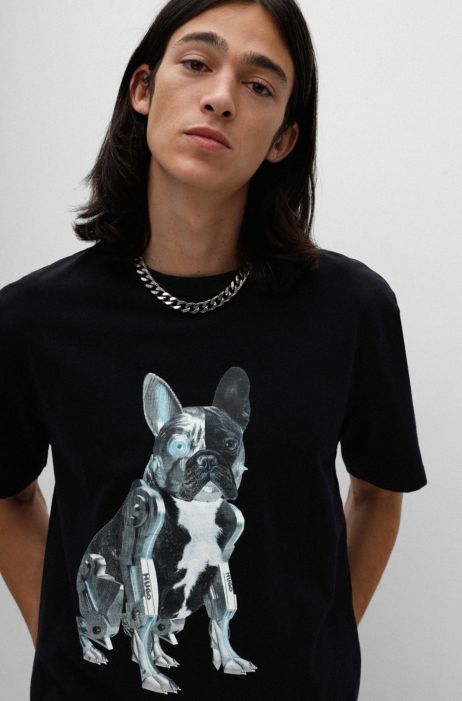 Hugo Cotton Jersey T Shirt With Cyber Dog Artwork
